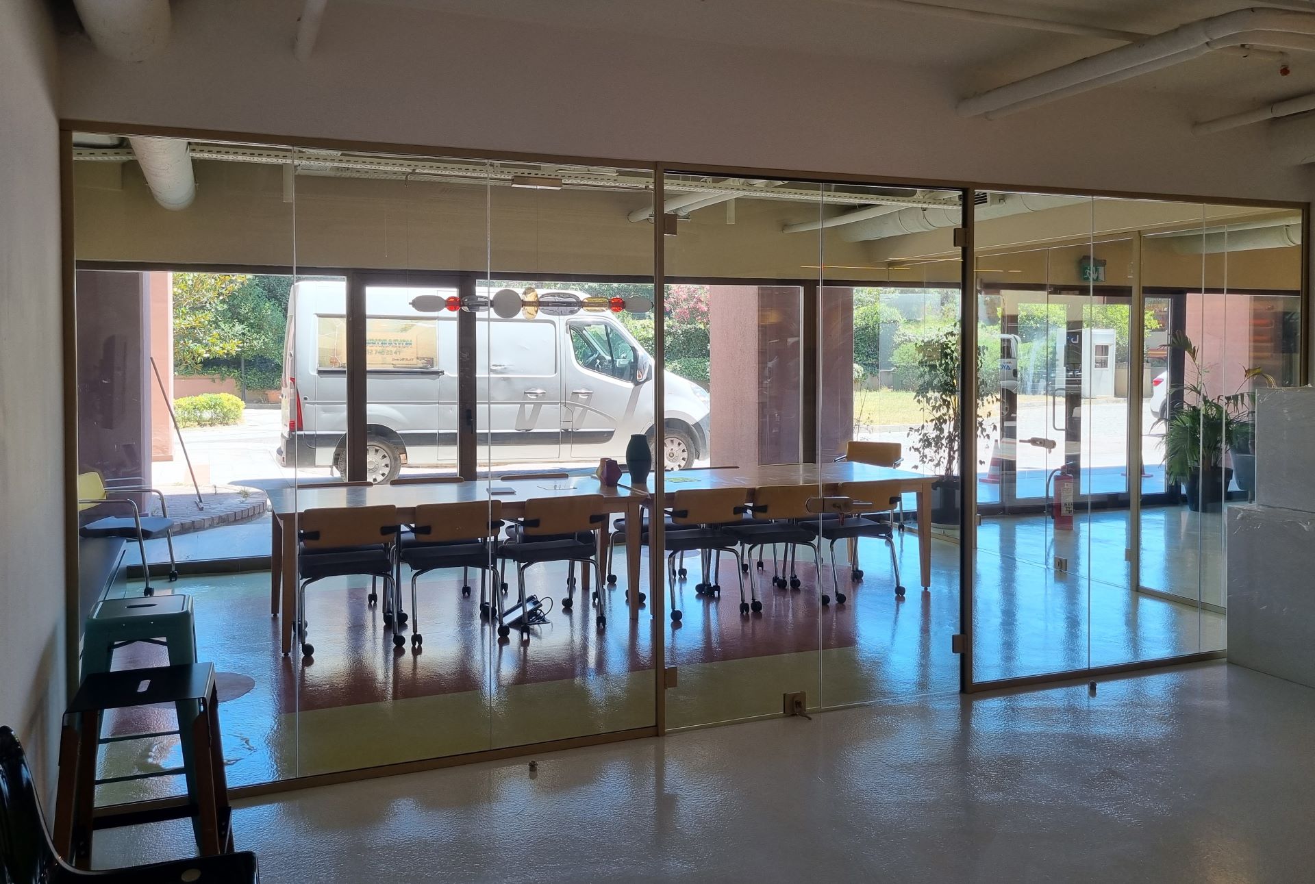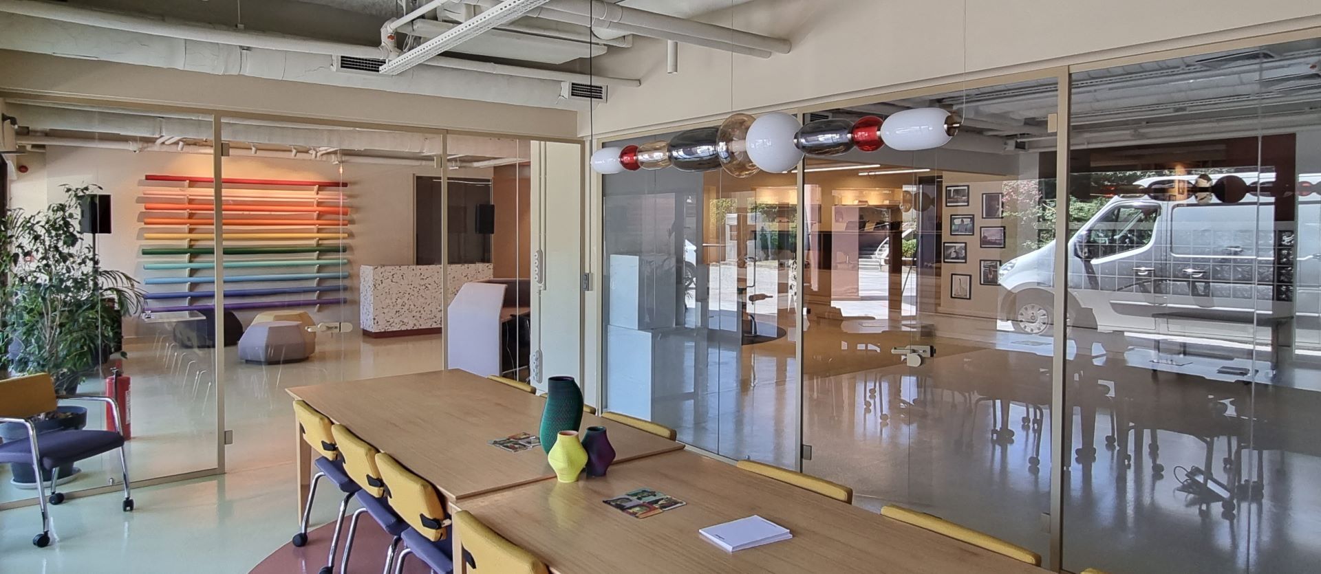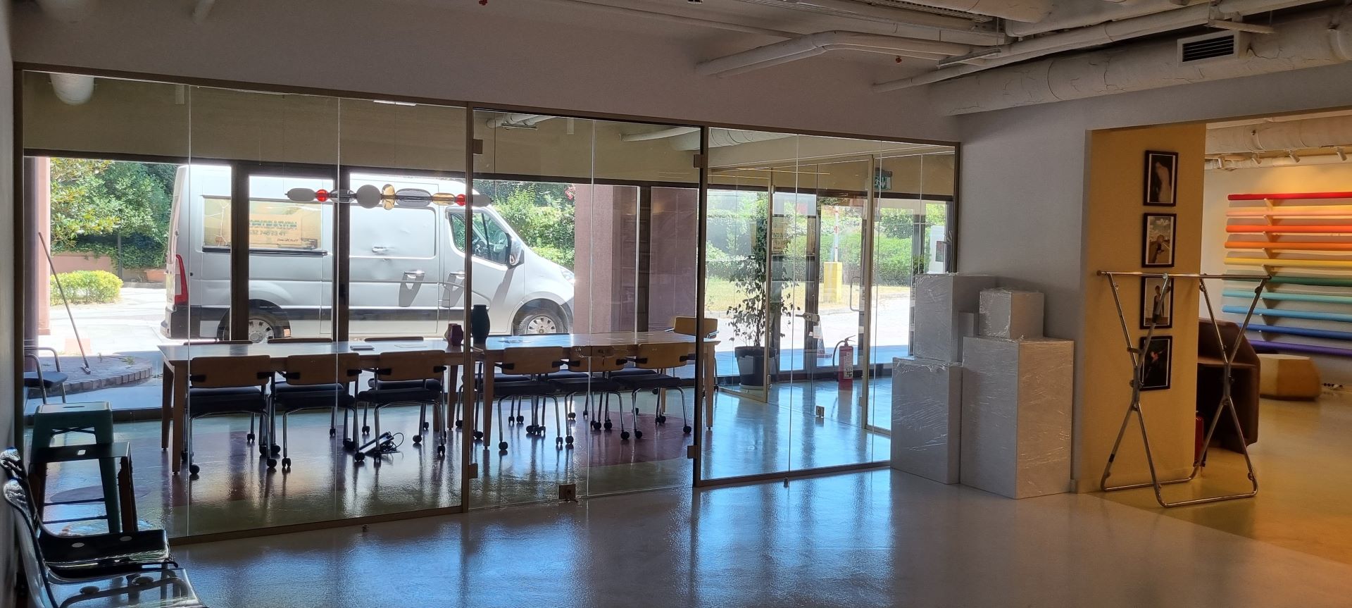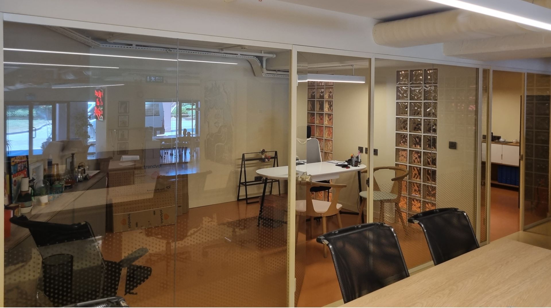 * DBS Saydam - Düşey profilsiz cam cama bölme duvar sistemi.