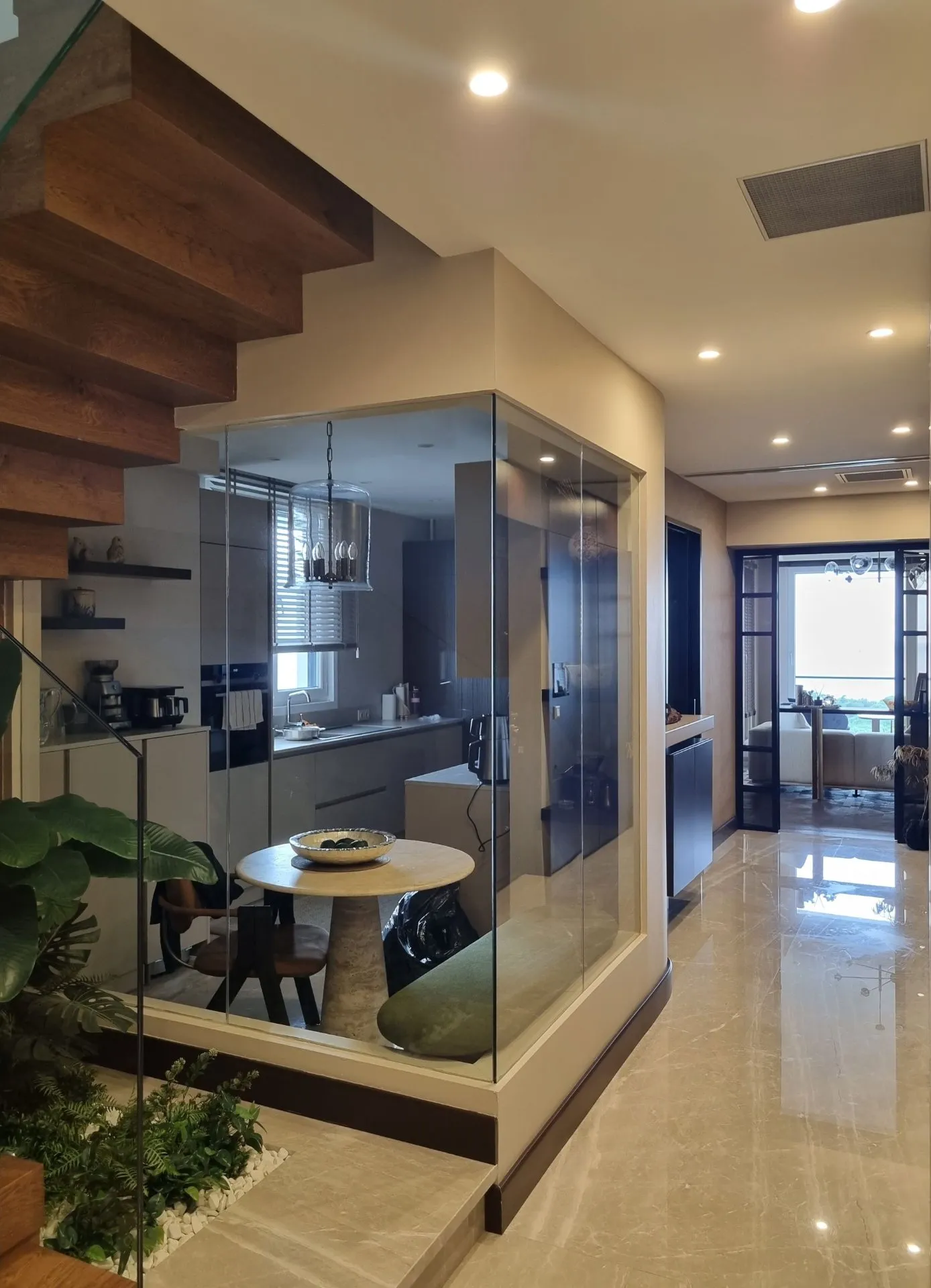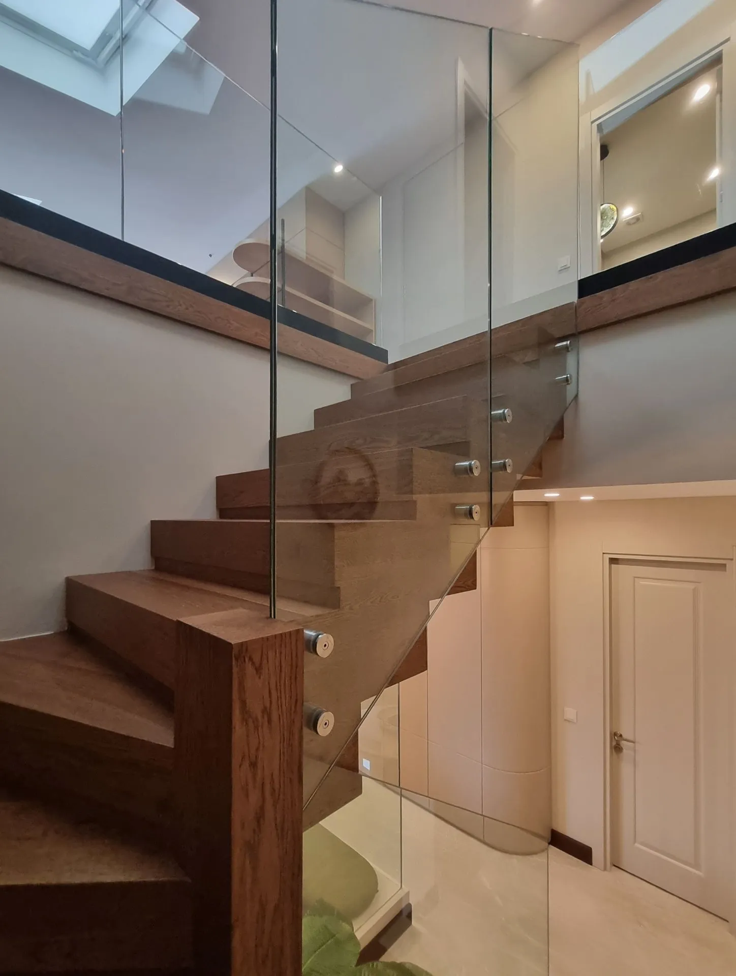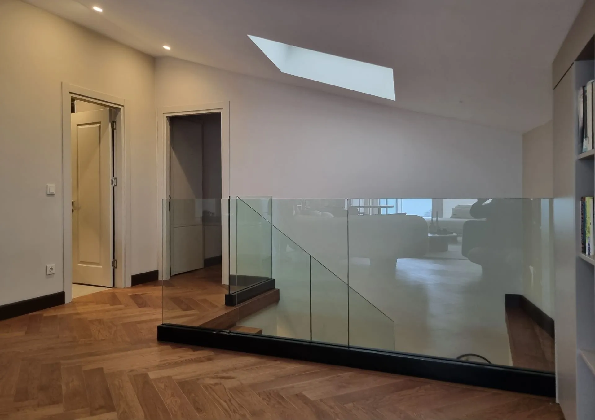 Kadıköy- Bağdat Caddesinde bulunan dubleks konutun cam bölme, cam kapılar ve cam korkulukları tarafımızdan titizlikle yapılarak teslim edilmiştir. Mutfak kısmında kullanılan cam bölücülerde profiller gizlenerek camın sıcaklığı ve şeffaflığı ön plana çıkarılmıştır. Salonda karolajlı çift kanatlı cam kapı kullanılmış, mutfakta duvar içerisine gizlenmiş sürgülü, karolajlı cam kanat kullanılarak mekana farklı bir estetik değer kazandırılmıştır. Ahşap merdivenlerde cam korkuluk kullanılarak ahşapla camın estetik uyumu sağlanmıştır.