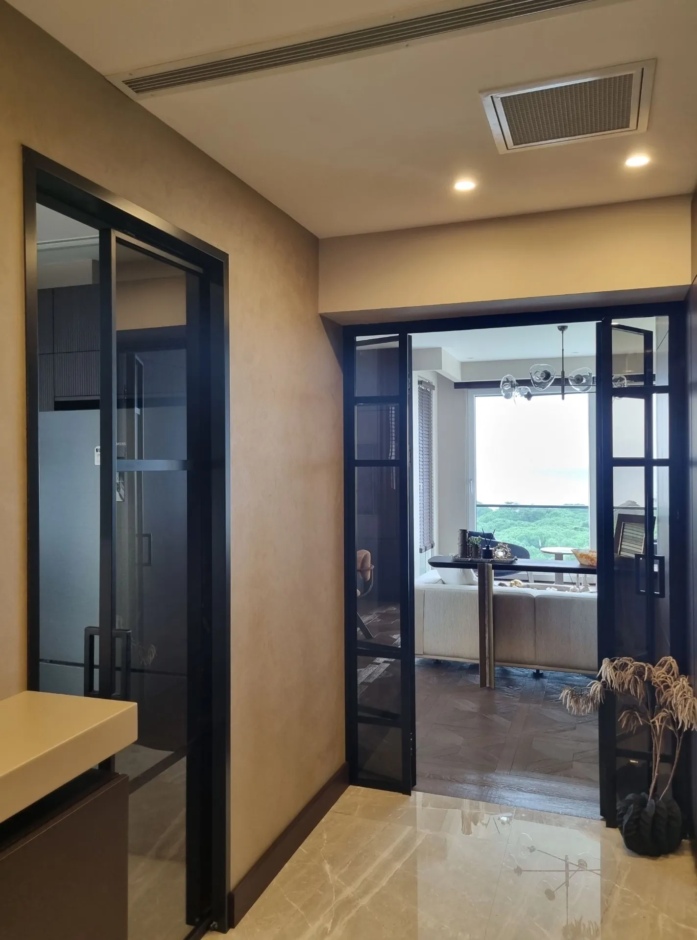* DBS Saydam - Düşey profilsiz cam cama bölme duvar sistemi.