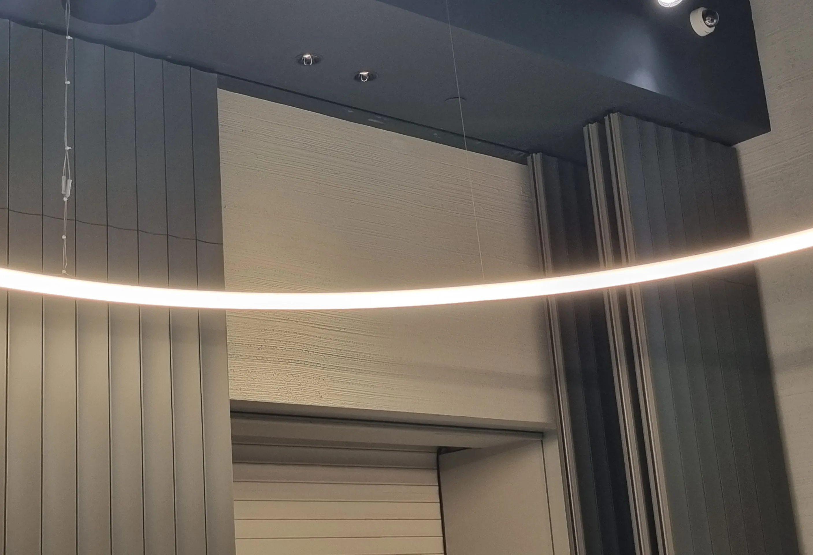 Hareketli bölmelerde özel tasarlanmış ahşap yüzeyler, manuel giyotin ve ses yalıtımlı paneller kullanılmıştır.