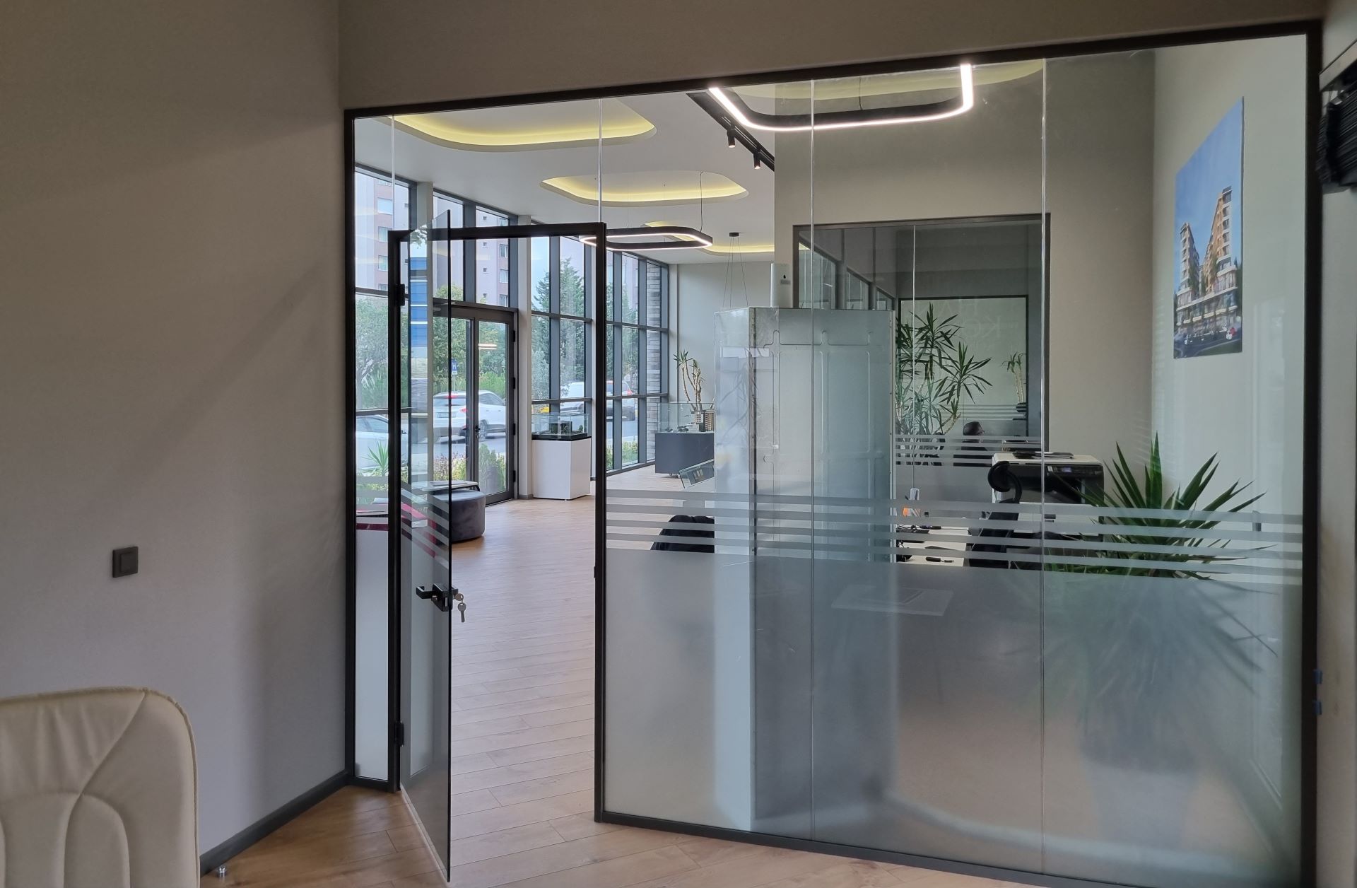 * DBS Saydam - Düşey profilsiz cam cama bölme duvar sistemi.