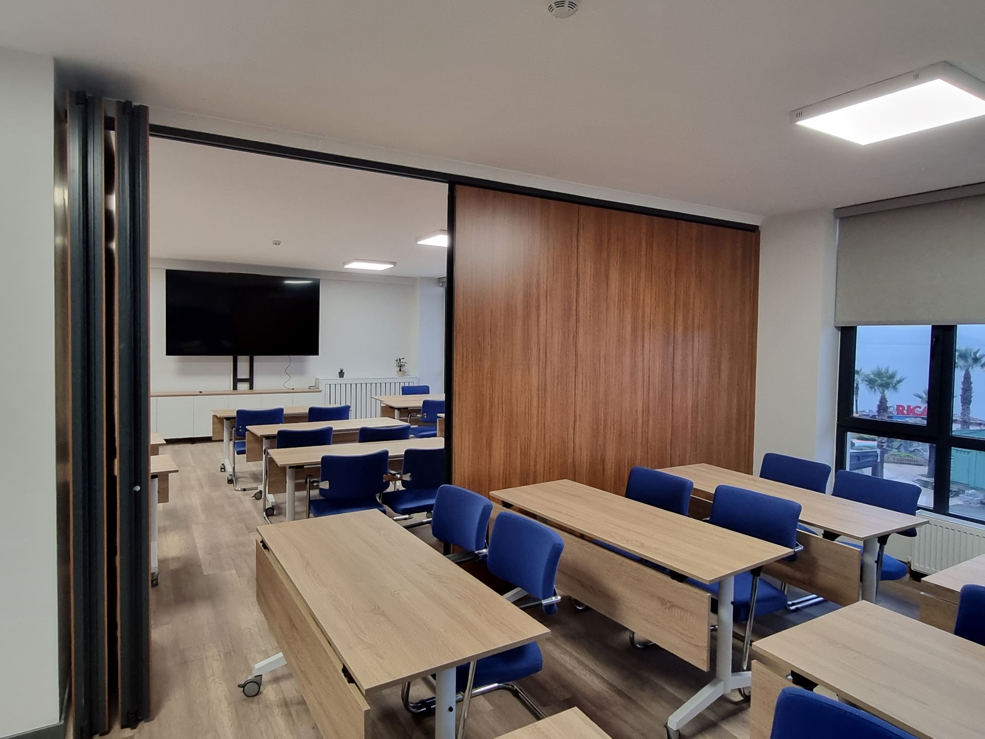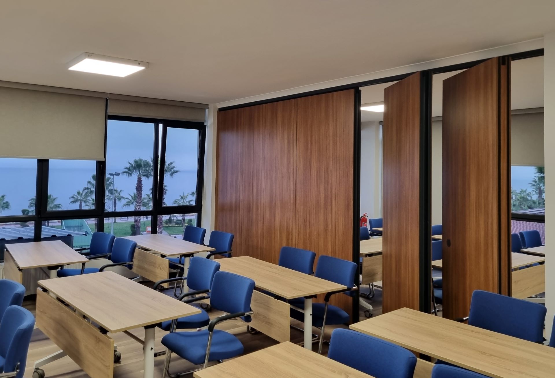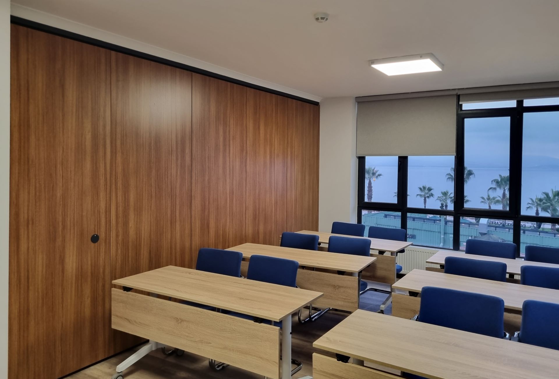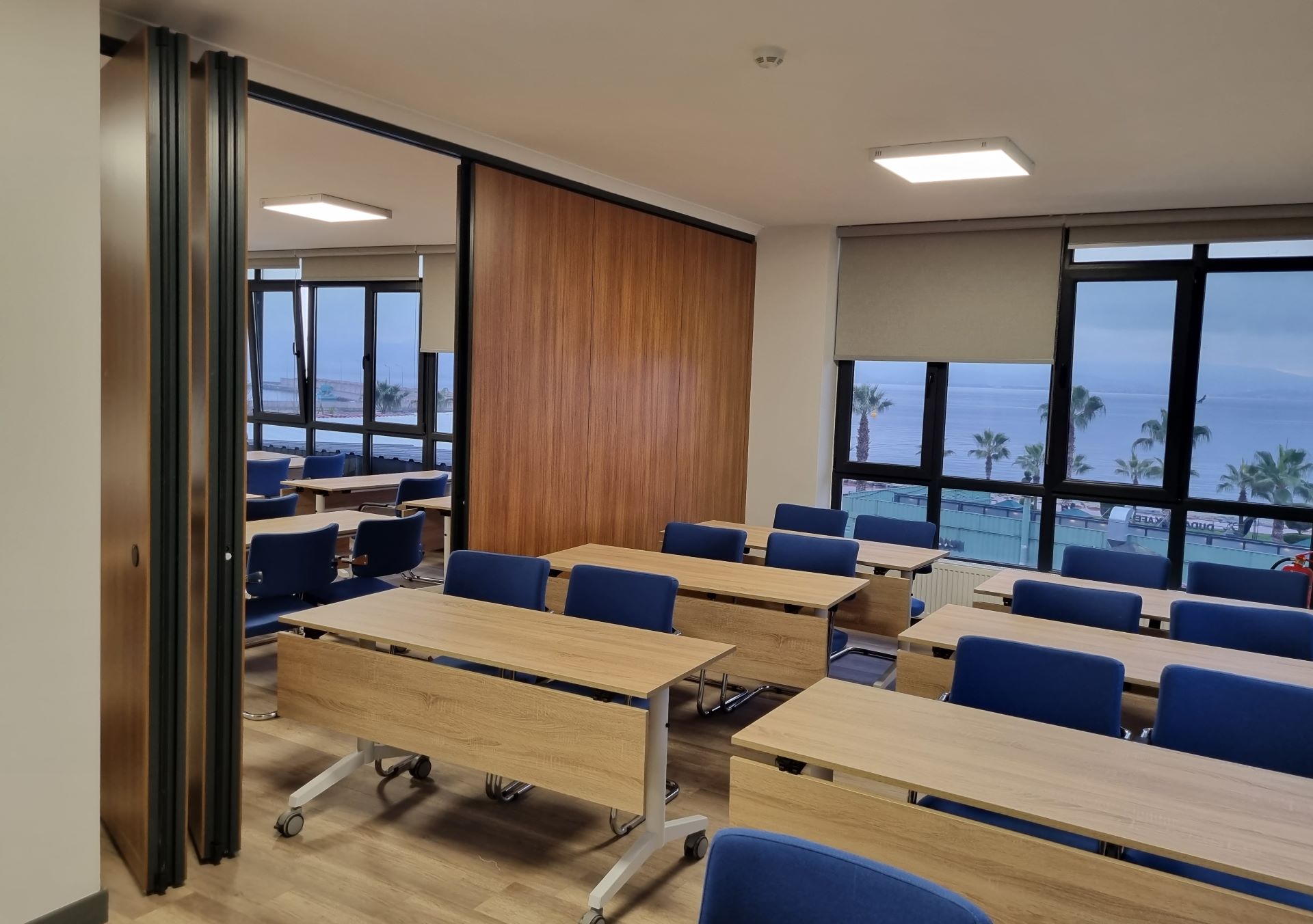 Eğitime katılan personelin sayısına göre ihtiyaç olması durumunda sınıfların ortasındaki haraketli bölme açılarak tek sınıf halinde eğitime devam edilebilmektedir.