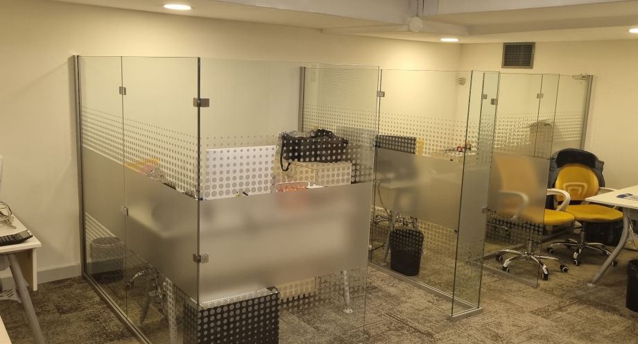 * DBS Yarım Bölme - Düşey profilsiz cam cama yarım bölme sistemi.