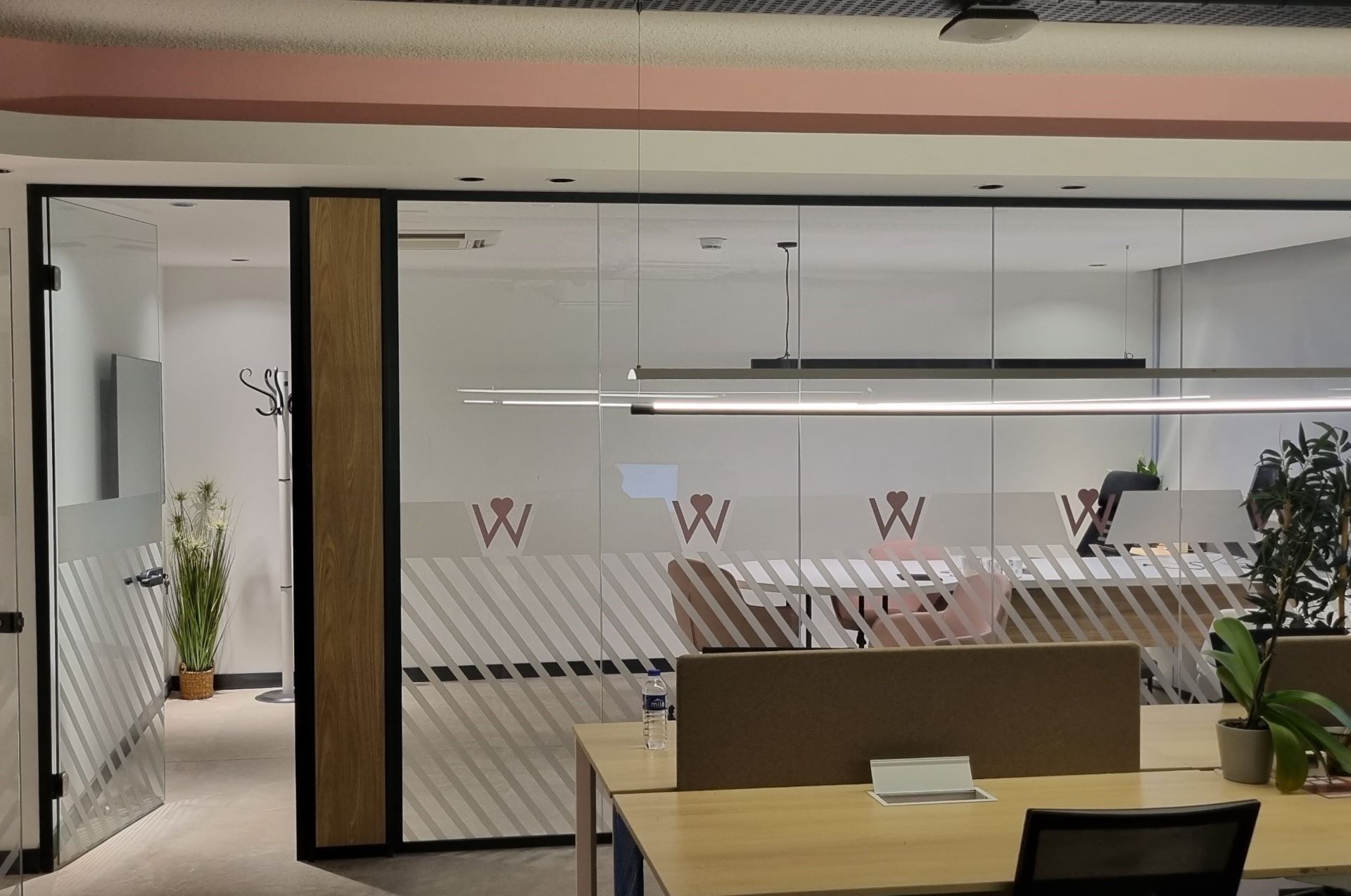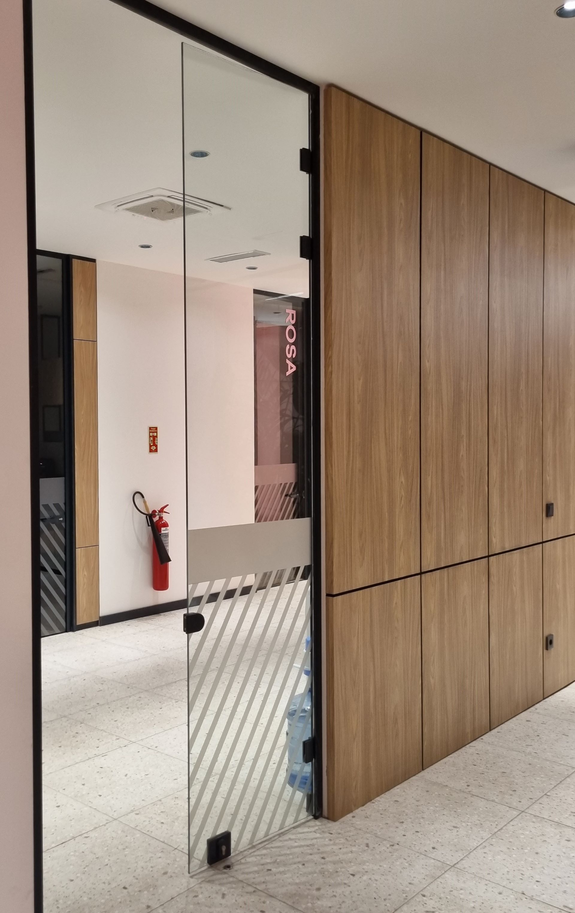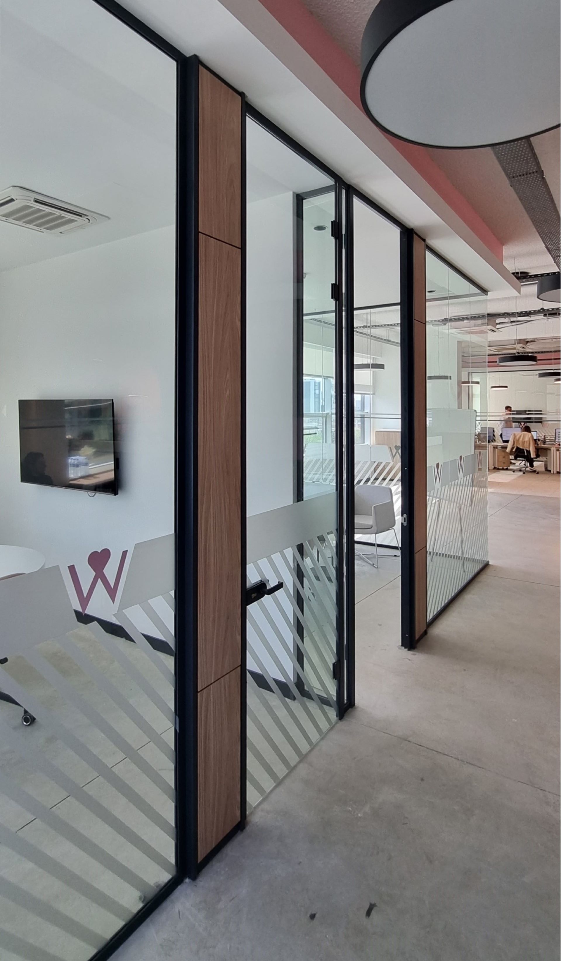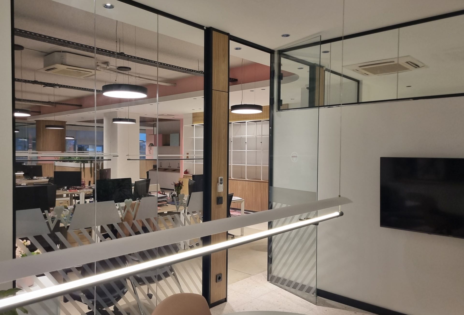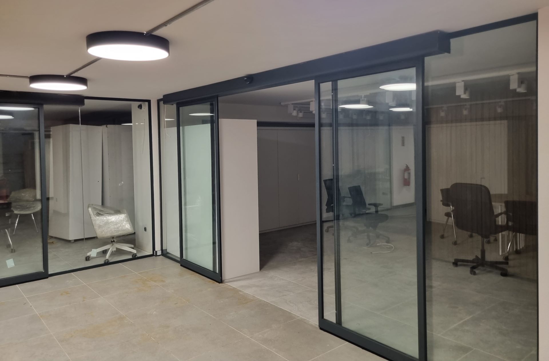 * DBS Saydam - Düşey profilsiz cam cama bölme duvar sistemi.