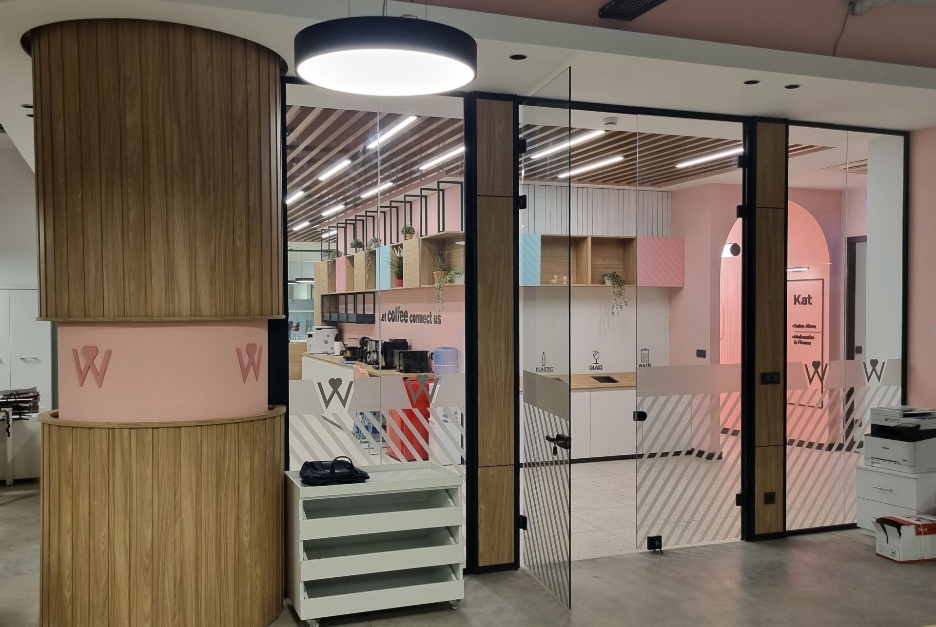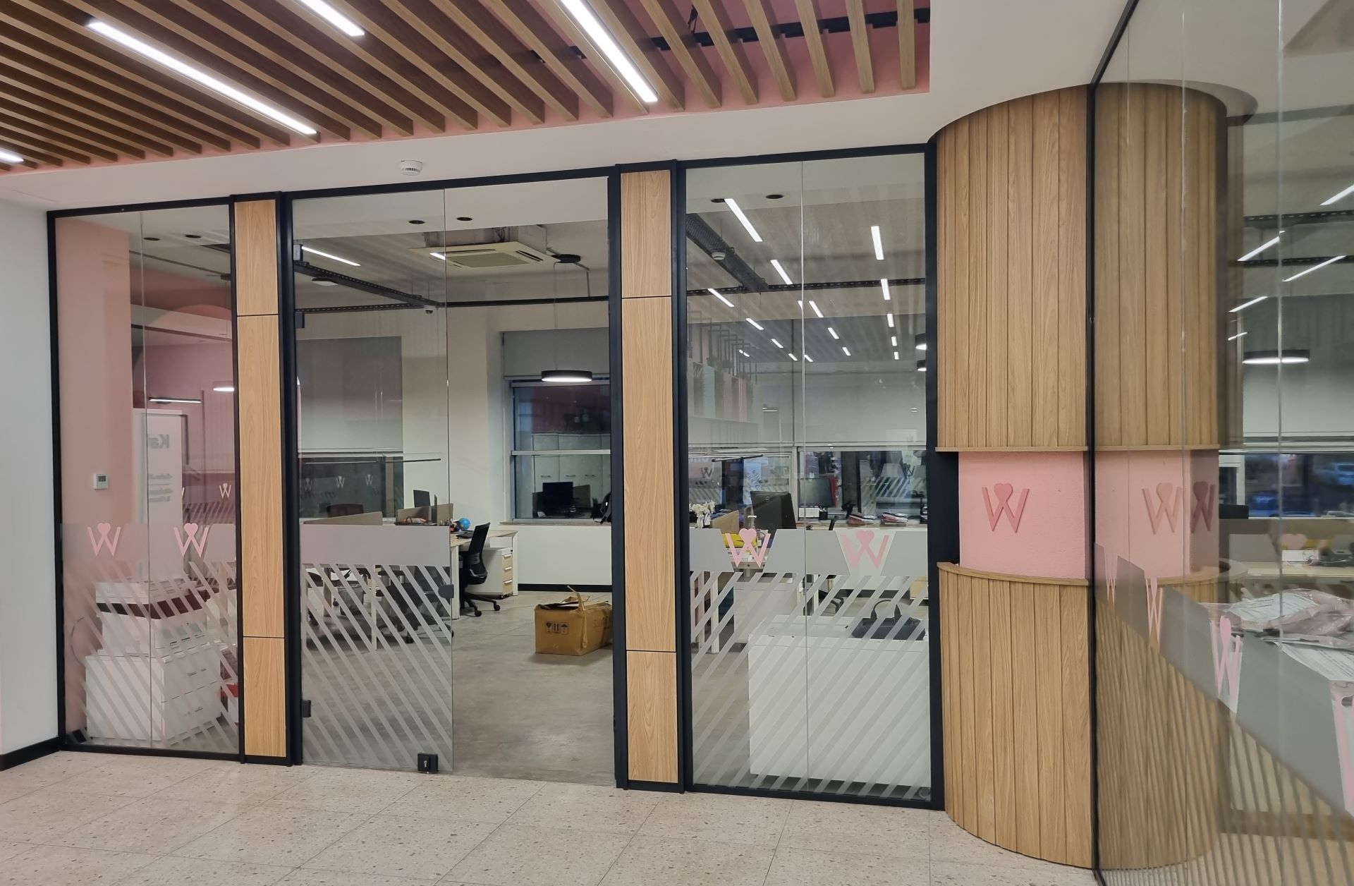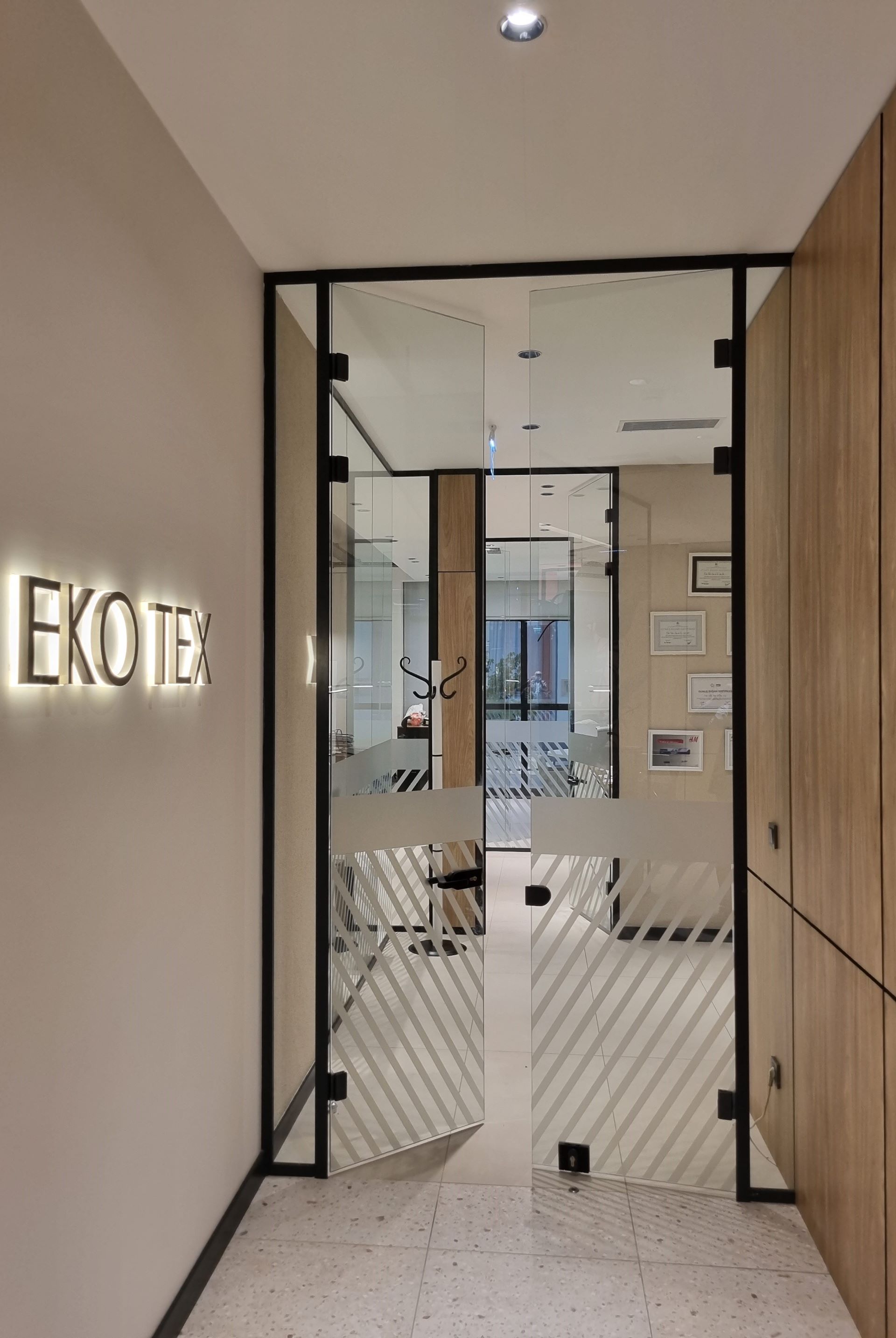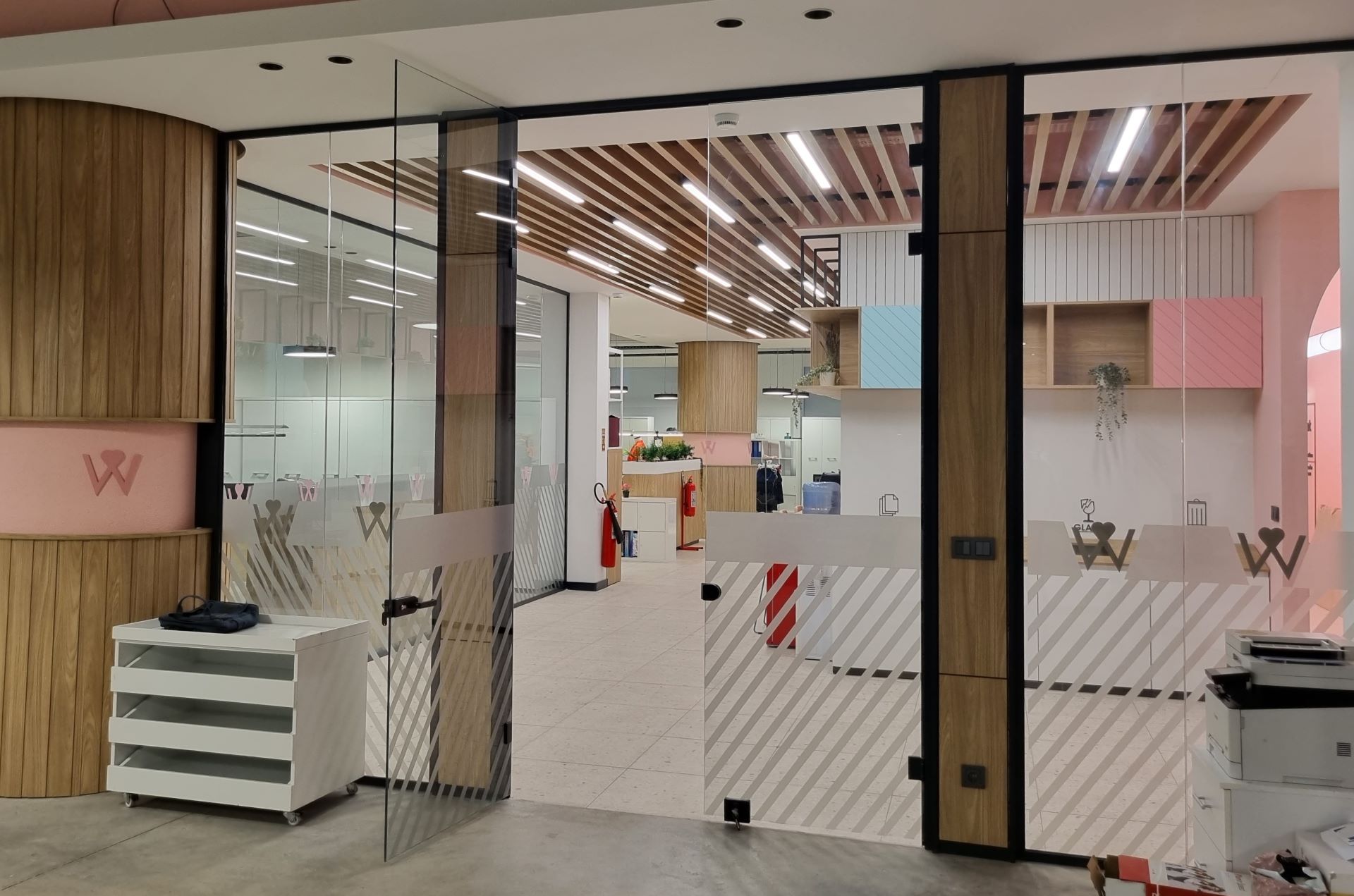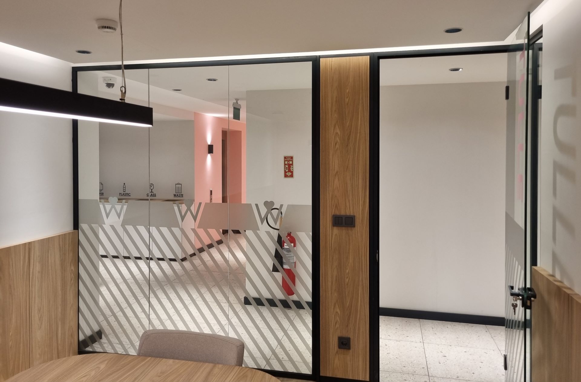 * DBS Saydam - Düşey profilsiz cam cama bölme duvar sistemi.
