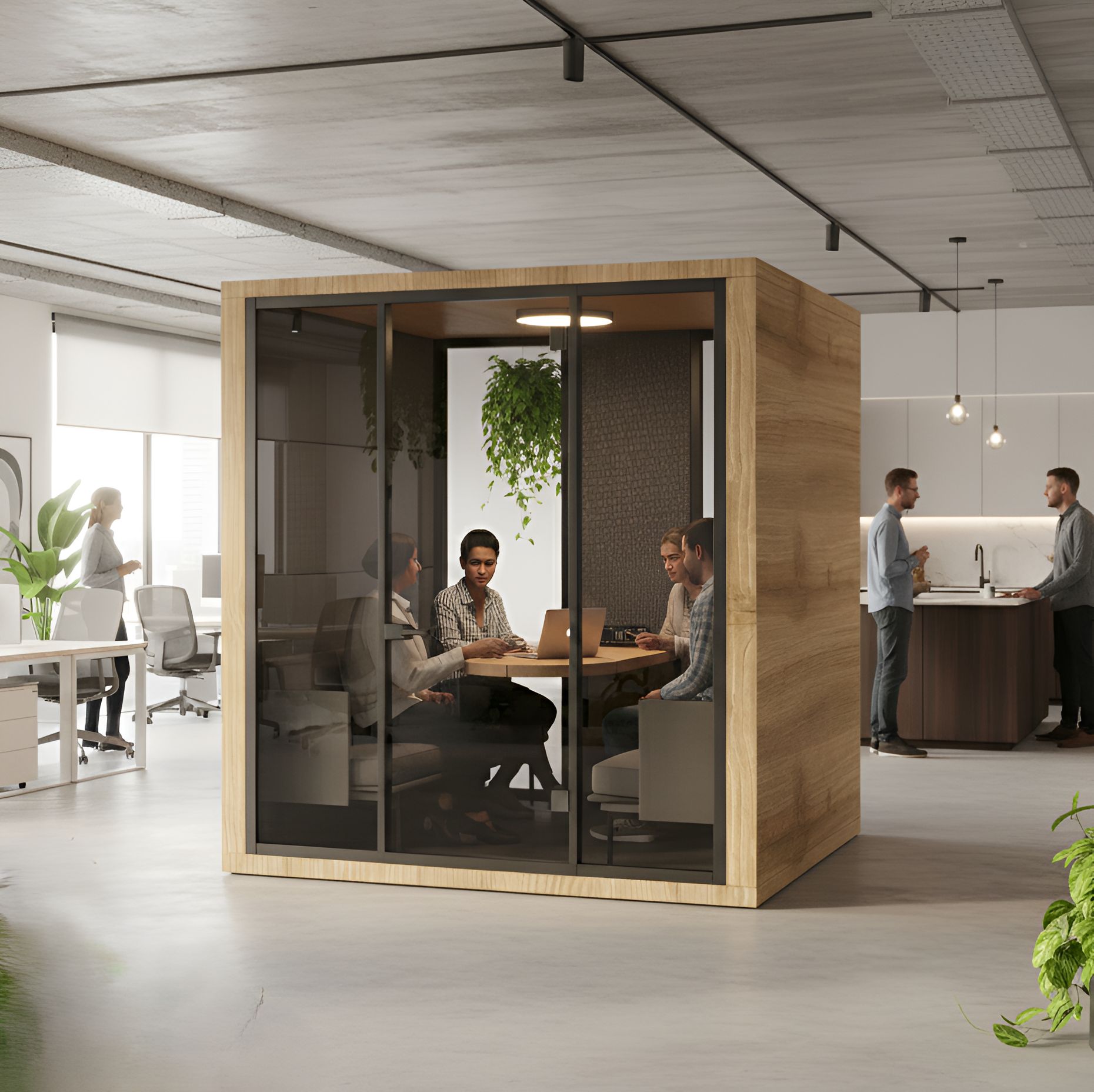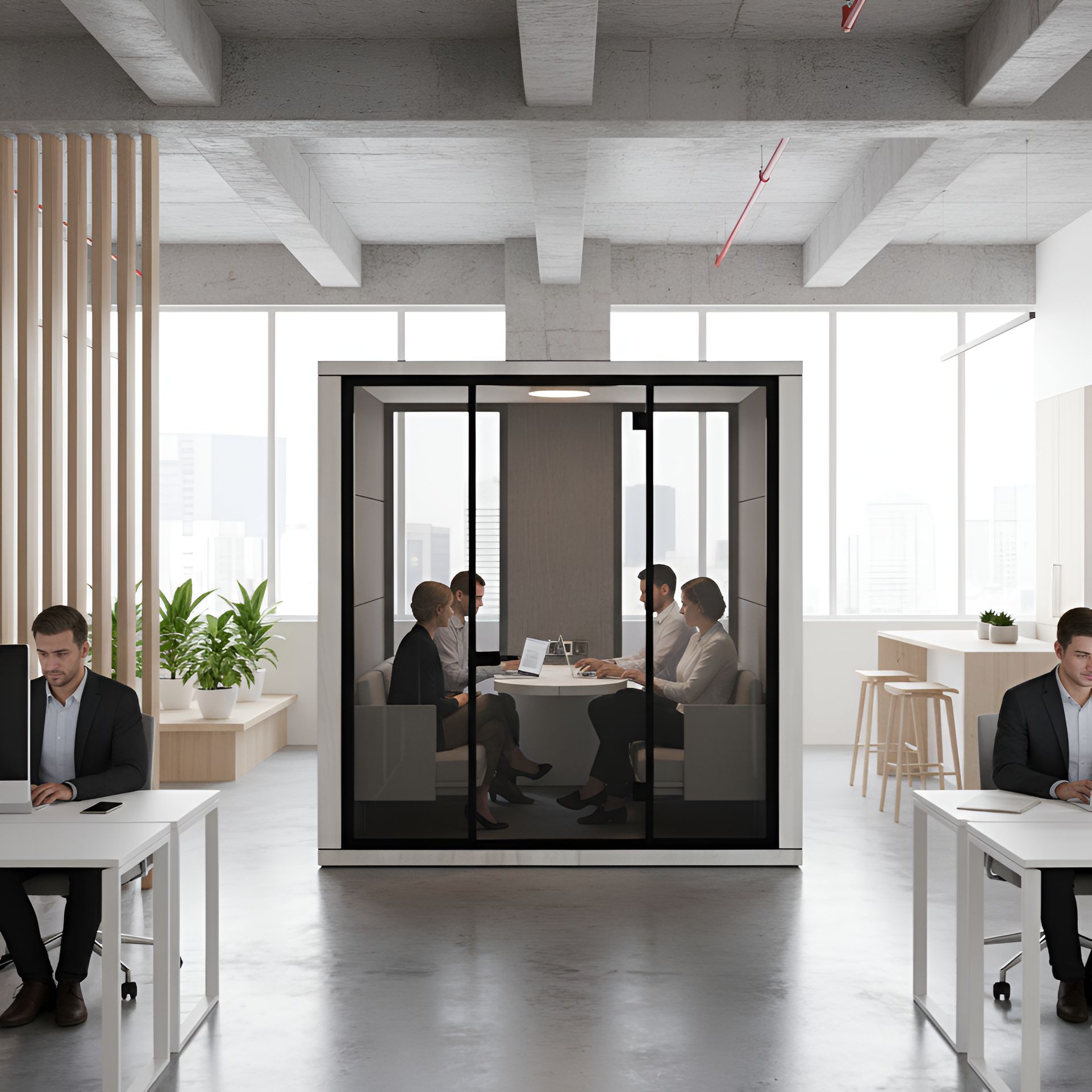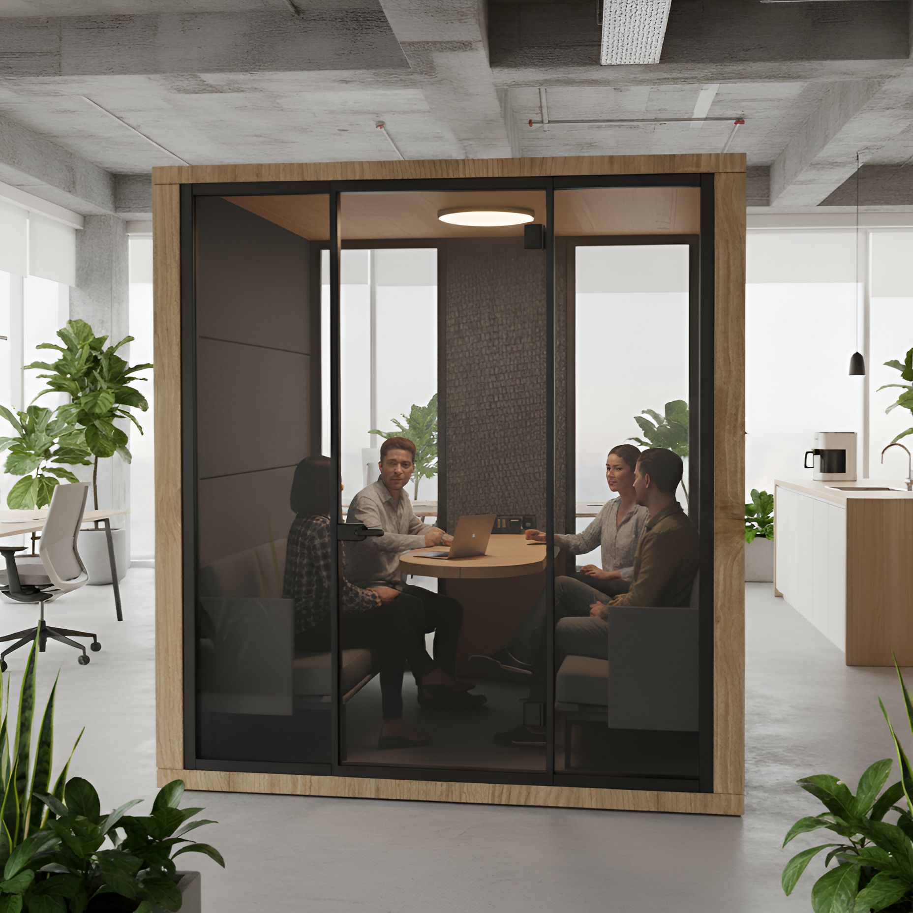 Designed for open offices and noisy environments, the Double Acoustic Meeting Booth provides a quiet and comfortable space, ideal for individual work or small meetings with two, three, or even four people — all away from external noise and distractions.