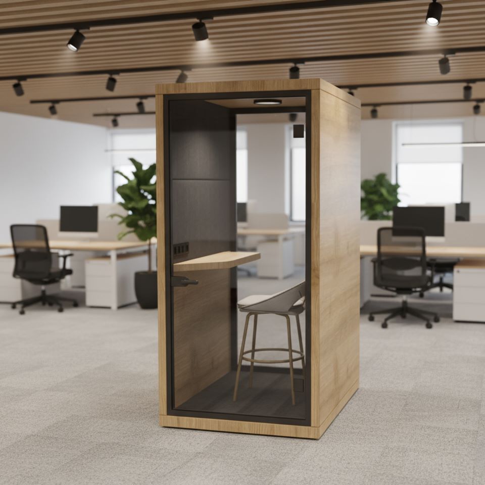Designed for open offices and noisy environments, our Acoustic Phone Booths provide a quiet and comfortable space for making phone calls without being disturbed by surrounding noise.