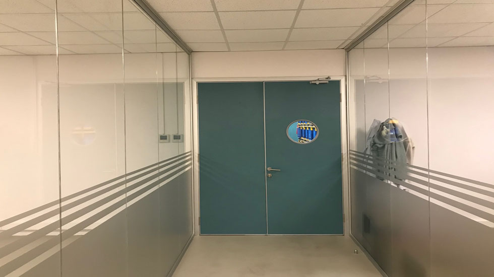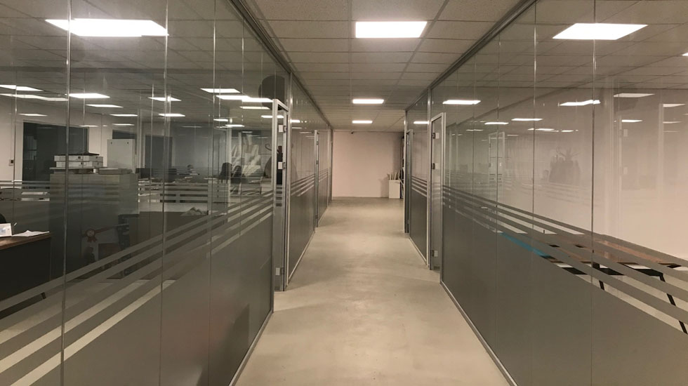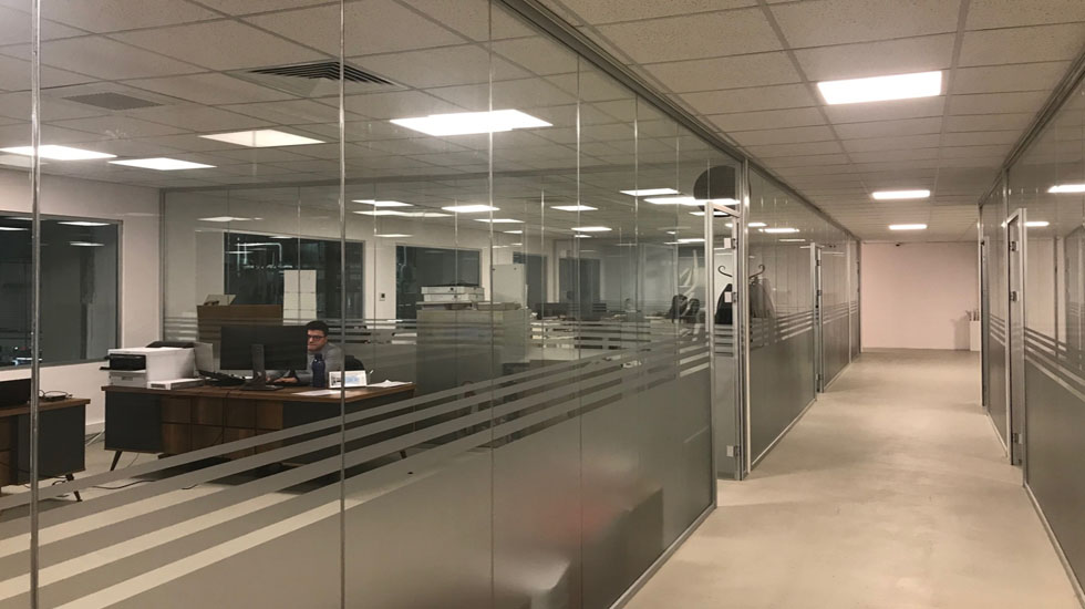 DBS Saydam - Düşey profilsiz cam cama bölme duvar sistemi.